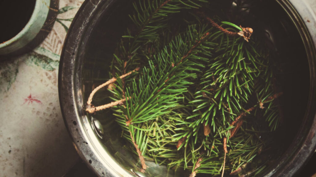 You can also freshen up your home with a needle steam simmer pot. The preparation is the same as for face steam, only now you leave the pot on the stove to simmer for the needles to release their divine aroma into your home. This also adds moisture to the otherwise dry winter air experienced in the north at that time of year as well as the medicinal properties from the terpenoids released into the air.