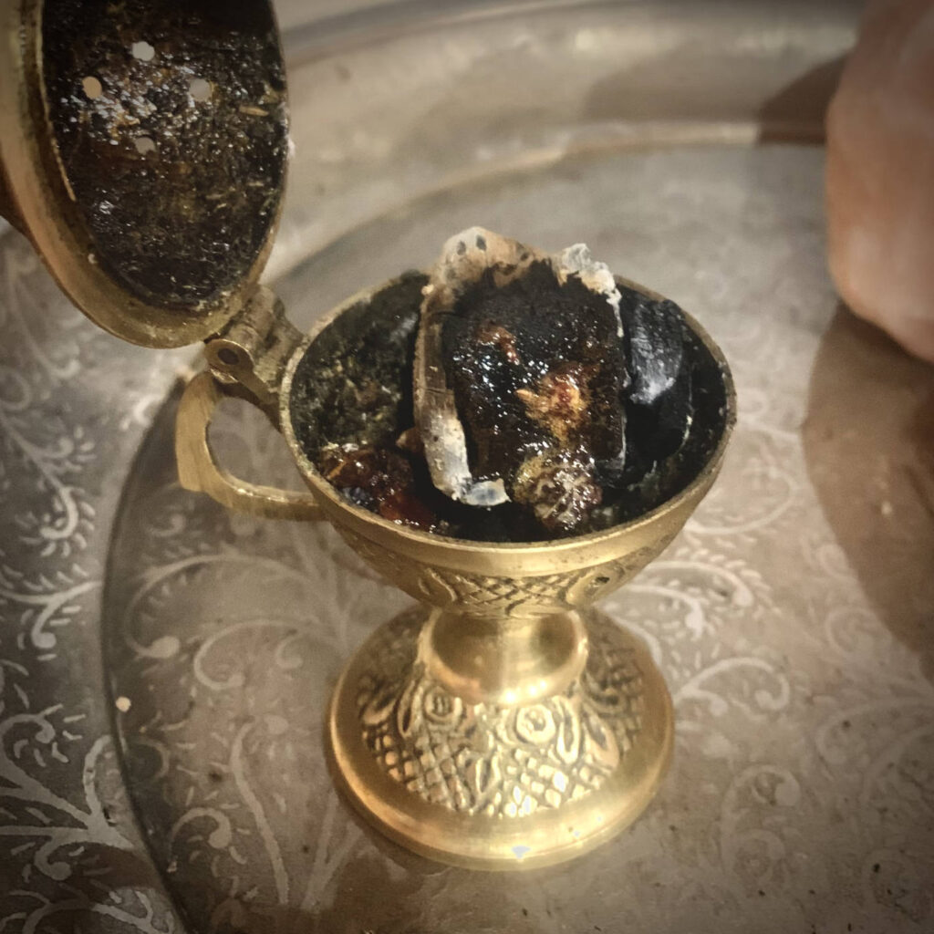 All you need to do is leave the resin that you have collected to solidify completely and then burn on a piece of charcoal in an incense burner or ceramic bowl filled with sand. I leave my resin in a paper bag and break it apart from time to time as it solidifies. It takes about a year for the resin to become fully solid and ready to burn.